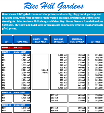 reste 14 lots disponibles surface a partir de 1340 m2 prix a partir de $ 134 000 USD