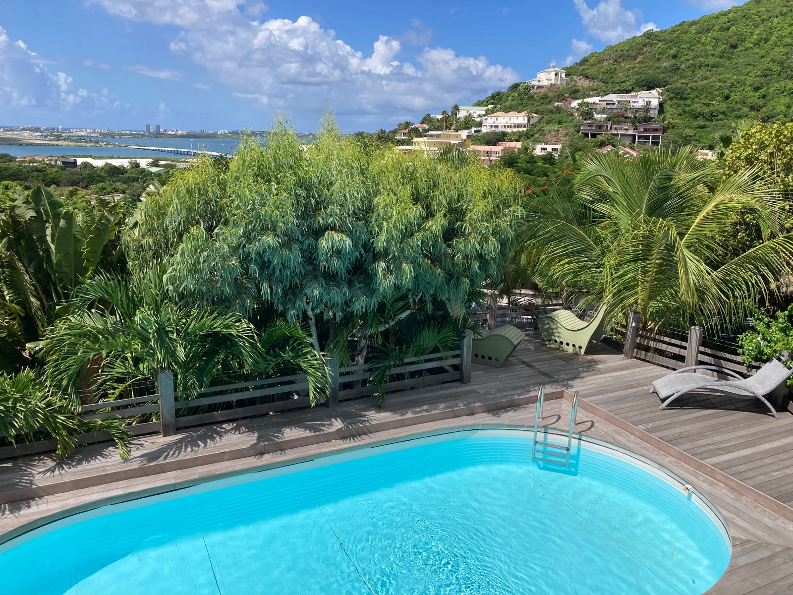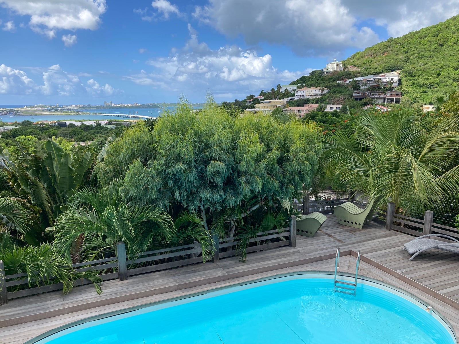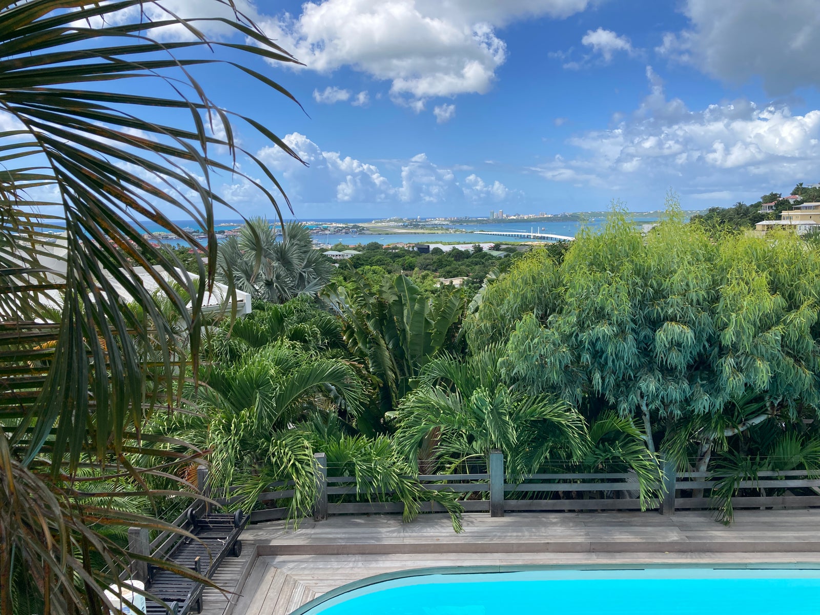 m2, la villa offre une vue époustouflante donnant sur l’océan, l’aéroport et le