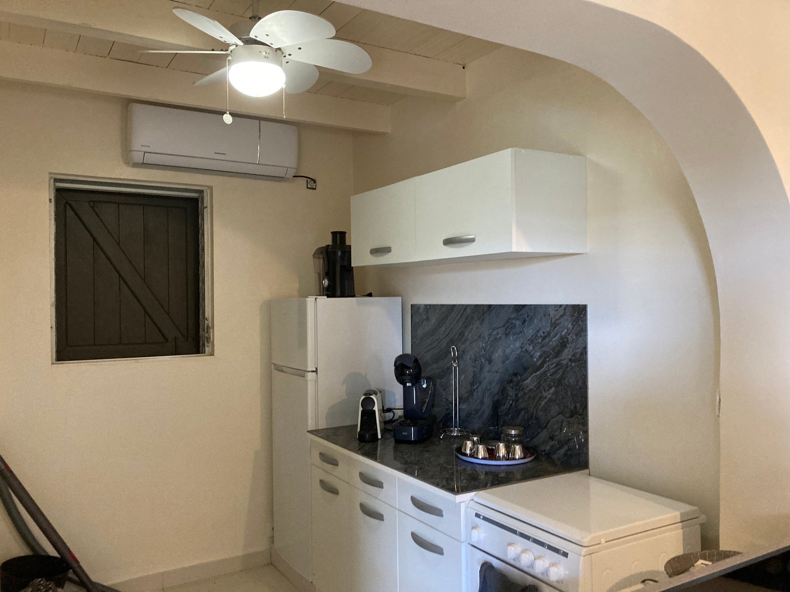 la cuisine, la salle d’eau et la chambre principale avec une salle de bain