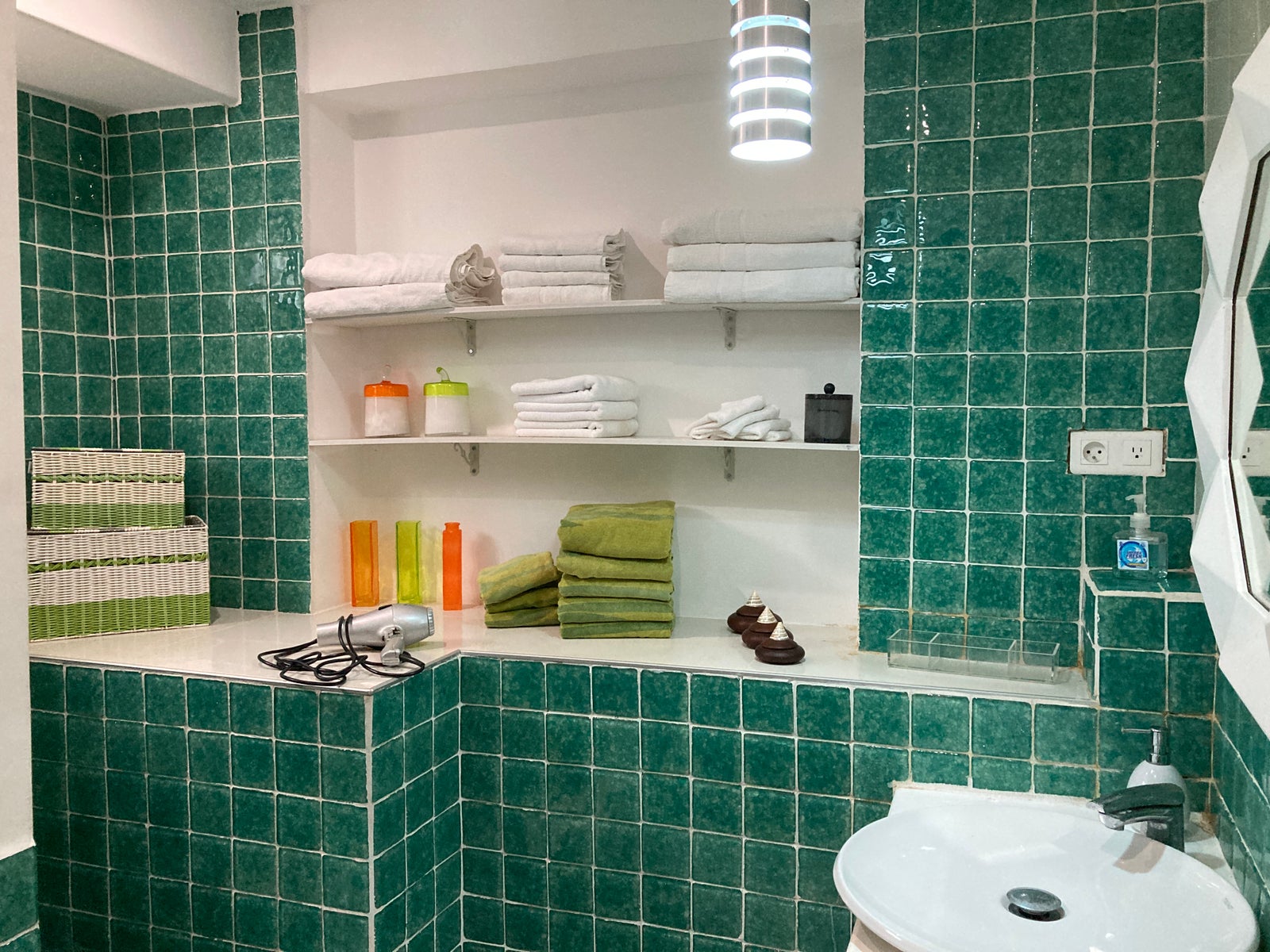 On the ground floor, with its high ceilings, the living area, kitchen, powder room, and master bedroom with an ensuite bathroom offer a magical view from the terrace.
